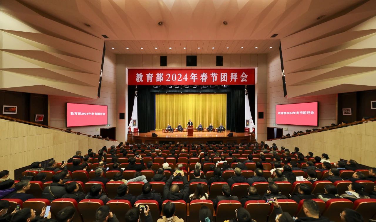 2月2日,教育部在京举办直属机关2024年春节团拜会,教育部党组书记、部长怀进鹏代表部党组向直属机关全体干部职工致以节日问候和新春祝福。在京部领导、老部长出席活动。