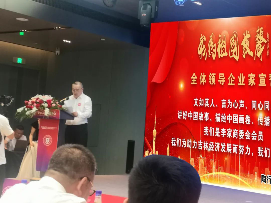 陶行知教育研究院吉林省院李德龙院长发表讲话,会上全体领导及家人共同发声:“文如其人,言为心声,同心同力,讲好中国故事,描绘中国画卷,传播中国声音!我们是李家商委会会员,我们为助力吉林经济发展而努力,我们为祖国发声。”
