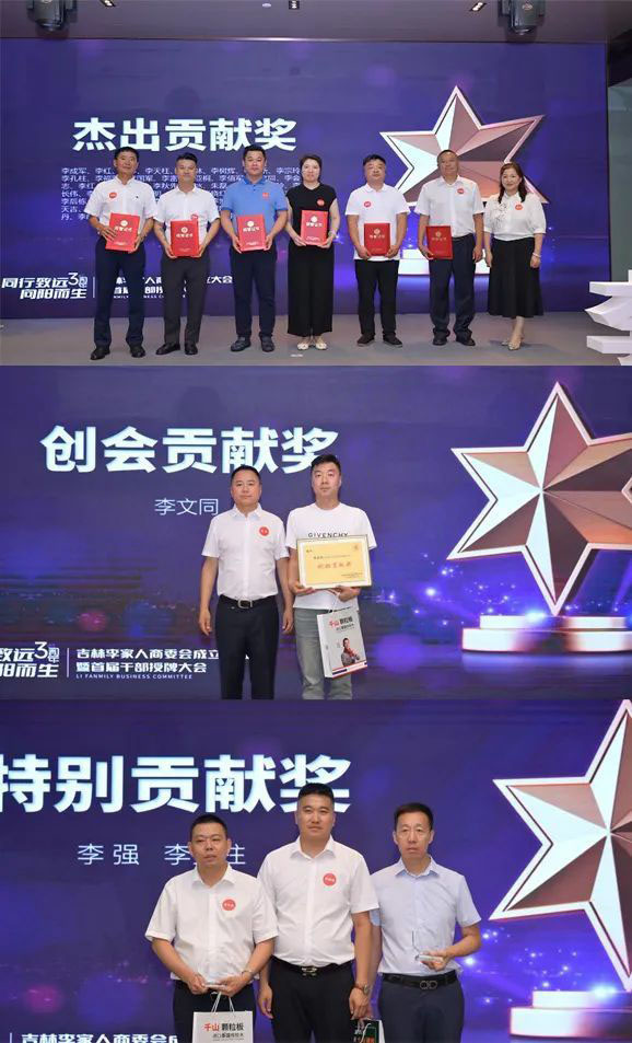 授牌仪式后,大会进入了表彰环节。主持人宣布了对在过去一年中为李家人商业委员会作出突出贡献的个人和团队的表彰决定。获奖者依次上台,接受了表彰和奖励。这一环节不仅是对获奖者过去成绩的肯定,更是对全体李家人的激励和鼓舞。首先上台的是为大会现金赞助、物资赞助的家人们(名单附文章结尾)接下来公布了杰出贡献奖、创会贡献奖、特别贡献奖等获奖名单!