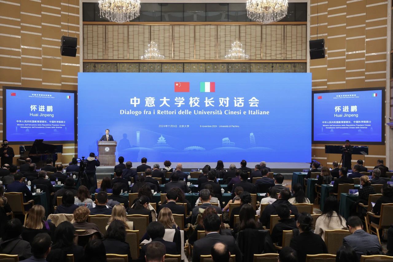为落实元首共识、深化教育交流合作,11月9日,中意大学校长对话会在北京大学举行。教育部部长怀进鹏出席对话会并致辞。他表示,中方坚持教育开放发展,愿同包括意大利在内的世界各国扩大学术交流和教育合作规模,积极参与全球教育治理,努力为全球教育改革发展贡献中国力量、教育力量。
