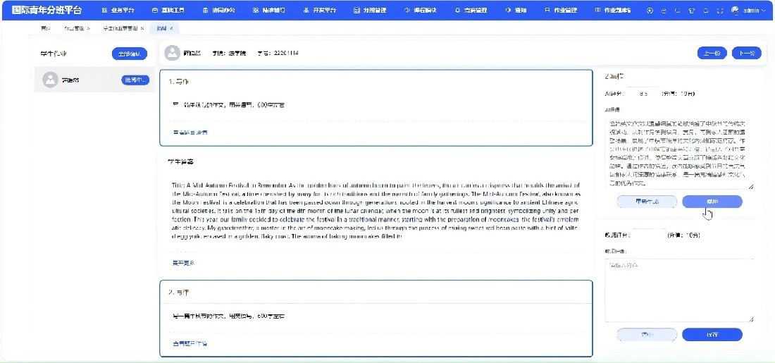 北京交通大学语言实验教学中心协同公共英语教学部开发的“北交AI学英语”平台能够以AI学伴辅导修改包括作文、音视频、文档等多种形式的英语作业,提供预约精准辅导服务等,为英语学习增添动力,满足学生个性化学习需求。