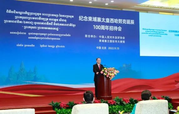 9月15日,由中国人民对外友好协会和柬埔寨驻华大使馆共同主办的纪念柬埔寨太皇西哈努克诞辰100周年招待会在钓鱼台国宾馆隆重举行。国家副主席王岐山与柬埔寨国王西哈莫尼、太后莫尼列共同出席招待会。王岐山副主席与西哈莫尼国王分别在招待会上致辞。