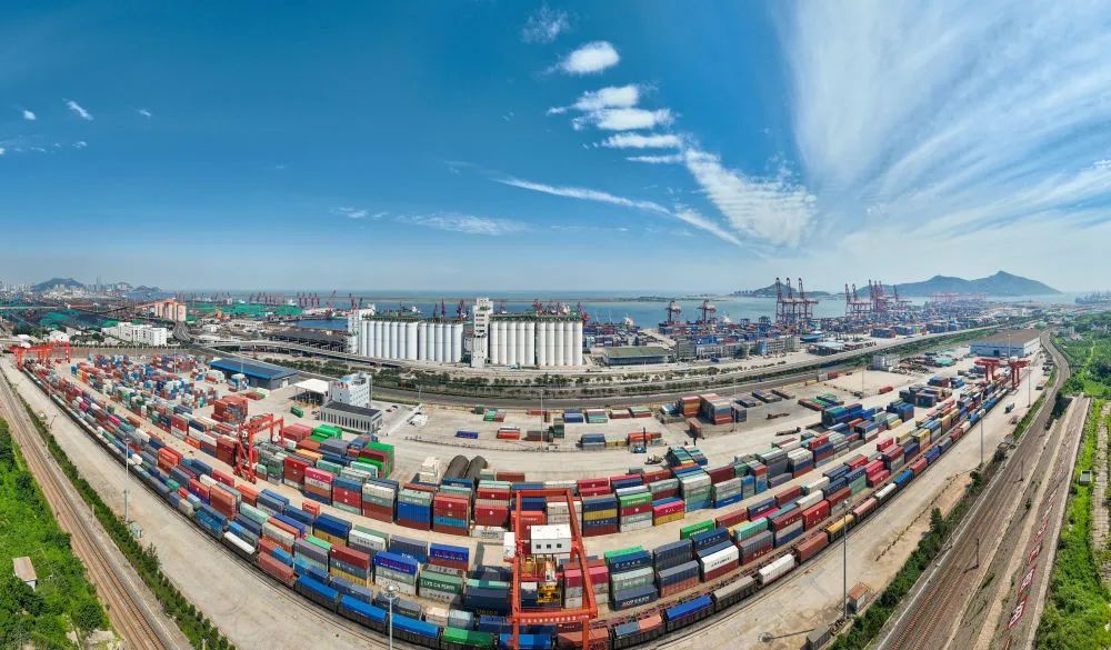 ▲ 中哈连云港物流合作基地及集装箱码头(2022年8月7日摄,拼接照片)。中哈连云港物流合作基地为哈萨克斯坦产品提供了从太平洋扬帆起航的出海口。