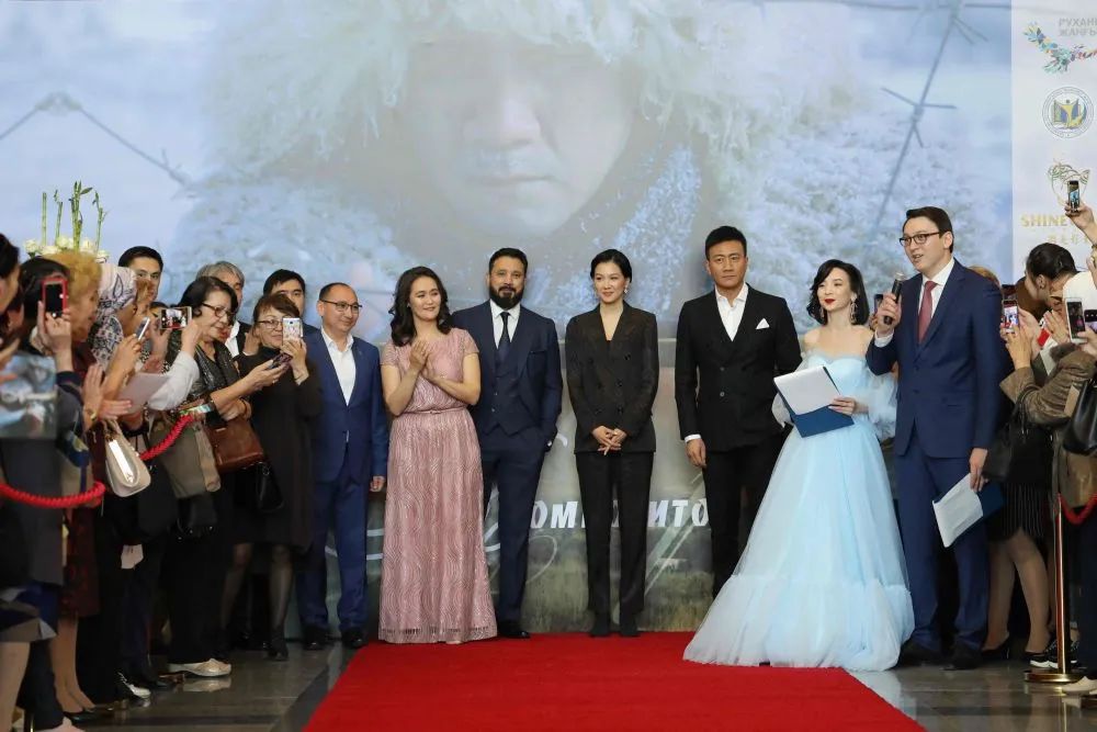 ▲ 中国与哈萨克斯坦首部合拍电影《音乐家》主创人员在努尔苏丹出席首映式(2019年5月17日摄)。影片讲述音乐家冼星海于二战期间辗转来到阿拉木图,在残酷环境下得到哈萨克斯坦音乐家救助的故事。