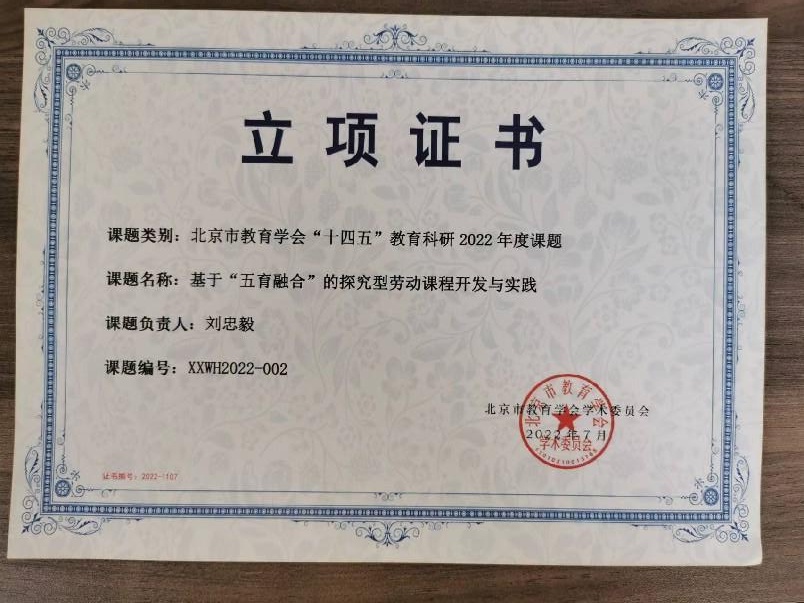 丰台外国语学校借助学校旁边的劳动基地,对学校劳动课程进行了科学、优质、高水平的课程开发,把以下五点作为学校劳动教育的目标:1、劳动是一种习惯,是一种责任,是一种爱好;2、要培养不怕累、不怕脏、不怕流汗的劳动精神;3、要养成能干、巧干、高质量和高效干的劳动特色;4、要养成思考、总结、提升、发表的劳动反思能力;5、要形成爱农、悯农、爱家爱国的情怀和发展意识。在这个目标的带动下,学校开发出了基于“五育融合”的探究型劳动课程,形成了校内、校外互补,学习与实践融合的新型劳动课程,这个课程得到了北京市教育学会的认可,被批准为北京市教育学会十四五科研课题。