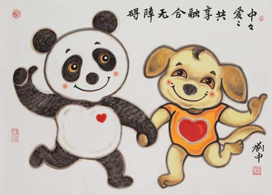 中国画《中中爱爱共享融合无障碍》作者:刘中