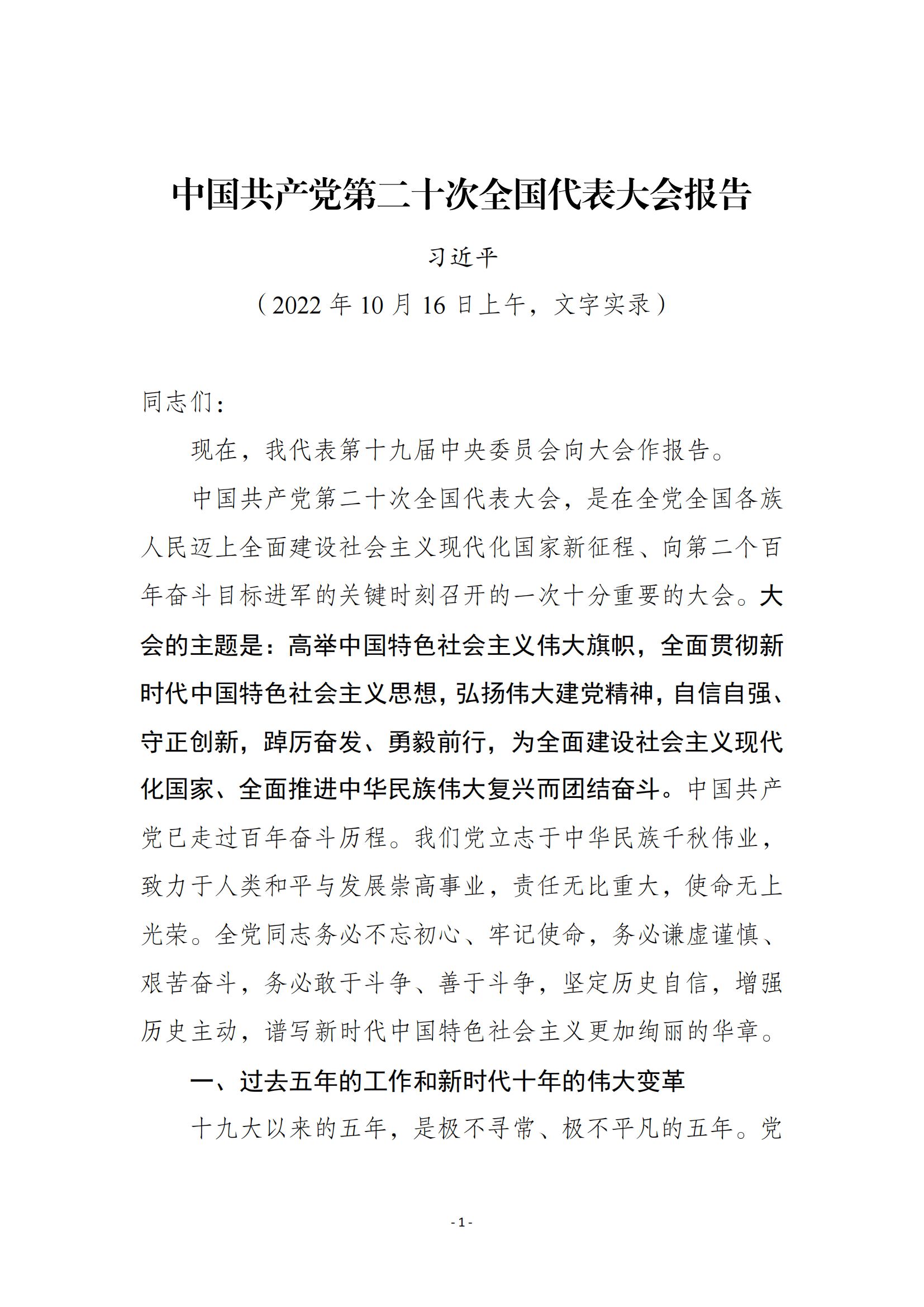 二十大报告(文字实录)