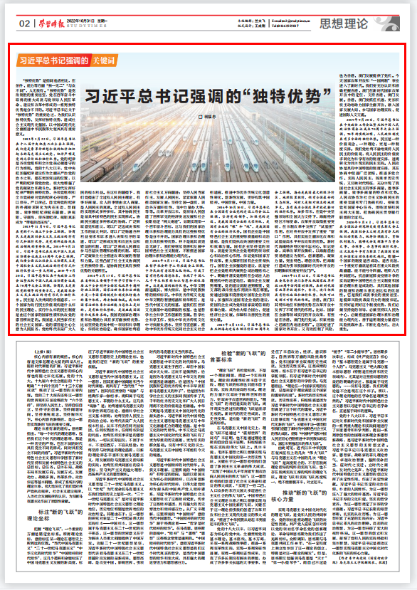 “独特优势”是指同他者相比,在条件、能力等方面“独一无二”“与众不同”,人无我有。“独特优势”是克敌制胜的重要法宝,党在百年奋斗中取得的重大成就与党领导人民在革命、建设和改革中形成的一系列独特优势是分不开的。习近平总书记关于“独特优势”的重要论述,为我们认识独特优势、发挥好独特优势,建成社会主义现代化强国,以中国式现代化全面推进中华民族伟大复兴具有重要意义。