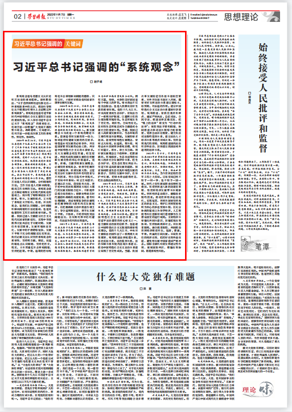 系统观念是马克思主义认识论和方法论的重要范畴。恩格斯指出,“关于自然界所有过程都处在一种系统联系中的认识,推动科学到处从个别部分和整体上去证明这种系统联系”。系统观念也是习近平新时代中国特色社会主义思想方法论的重要内容。深入学习习近平总书记关于“系统观念”的重要论述,有助于进一步增强广大党员干部的整体观念、战略思维、大局意识,有利于进一步提高各项工作的系统性、预见性、协同性。
