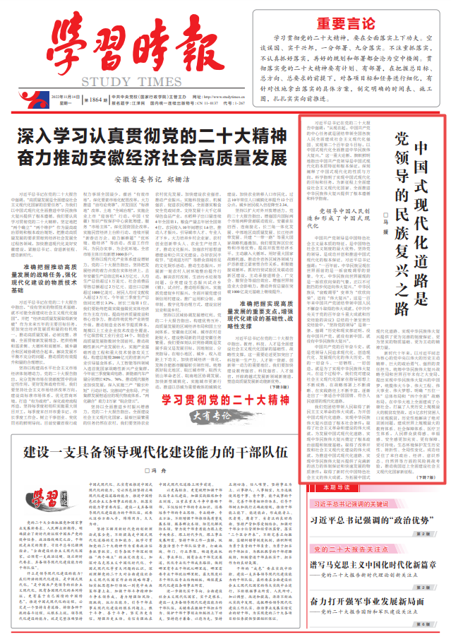 习近平总书记在党的二十大报告中强调:“从现在起,中国共产党的中心任务就是团结带领全国各族人民全面建成社会主义现代化强国、实现第二个百年奋斗目标,以中国式现代化全面推进中华民族伟大复兴。”这一重大论断,旗帜鲜明地指出中国共产党领导是中国式现代化的本质特征和根本保证,深刻阐释了中国式现代化的性质与方向,科学指明了实现中国式现代化的目标和任务,为新征程上全面建设社会主义现代化国家、全面推进中华民族伟大复兴提供了根本遵循和科学指南。