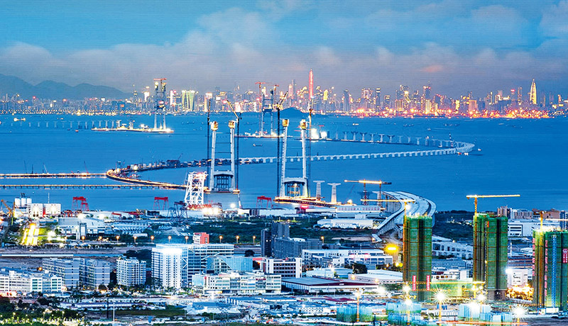 曾经被伶仃洋隔断的珠江口两岸城市群,正被一条条交通大动脉连通。粤港澳大湾区高质量发展,充分彰显习近平新时代中国特色社会主义思想的真理之光。图为正在建设的深中通道(资料照片)。 新华社发 黄春华/摄