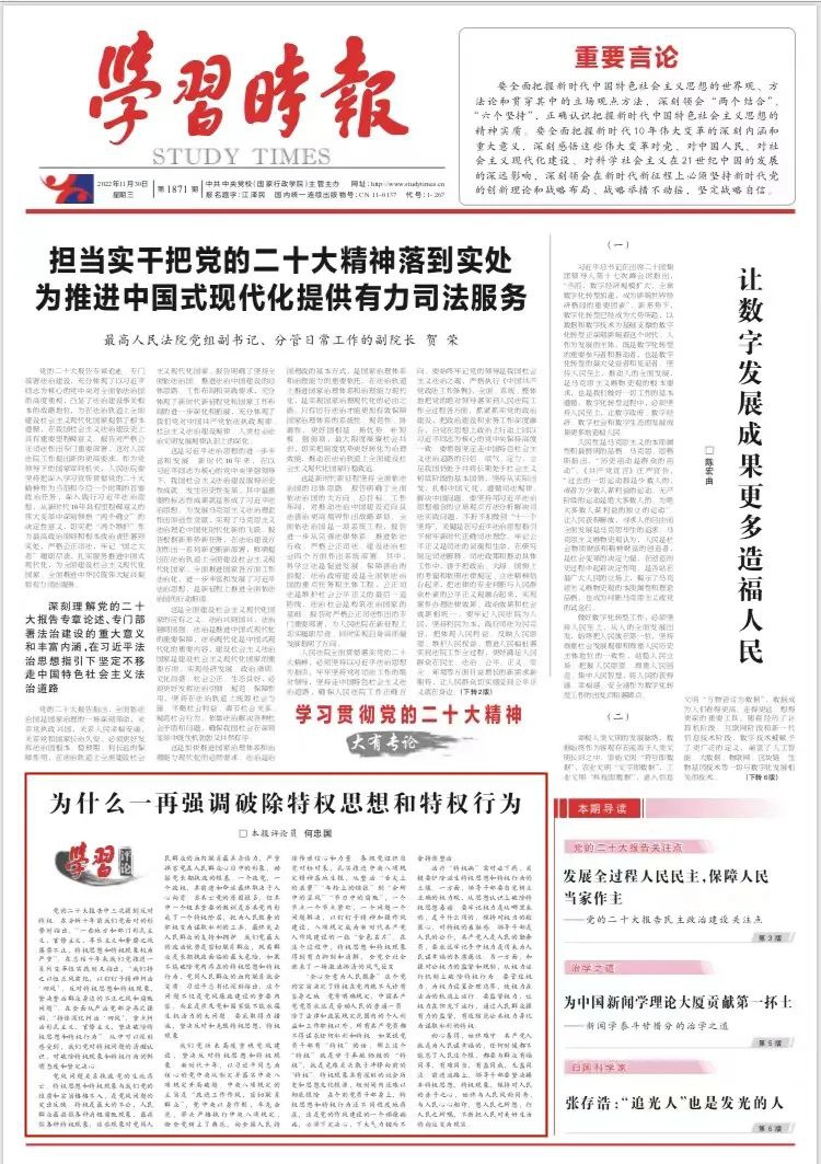 党的二十大报告中三次提到反对特权。在分析十年前我们党面对的形势时指出,“一些地方和部门形式主义、官僚主义、享乐主义和奢靡之风屡禁不止,特权思想和特权现象较为严重”。在总结十年来我们党推进一系列变革性实践时又指出,“我们持之以恒正风肃纪,以钉钉子精神纠治‘四风’,反对特权思想和特权现象,坚决整治群众身边的不正之风和腐败问题”。在全面从严治党部分再次强调,“持续深化纠治‘四风’,重点纠治形式主义、官僚主义,坚决破除特权思想和特权行为”。从中可以深刻感受到,我们党对特权问题的清醒认识,对破除特权现象和特权行为的鲜明态度和坚定决心。