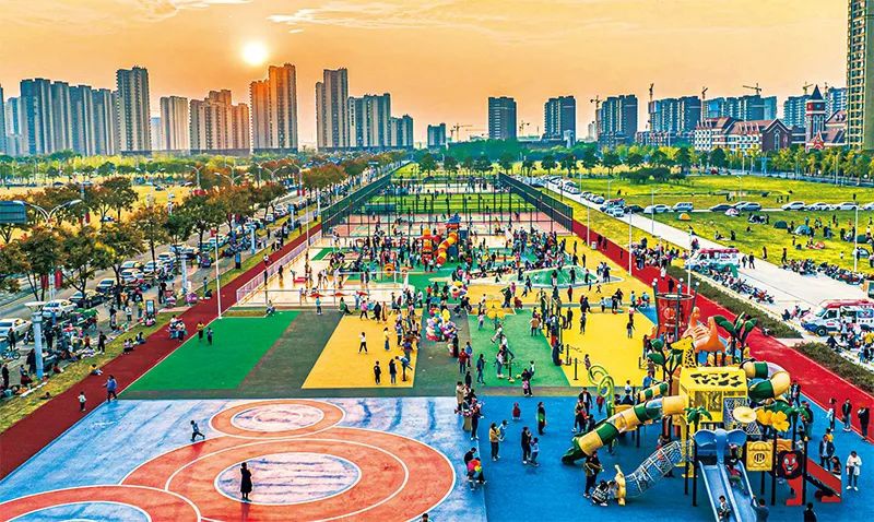 推进中国式现代化,必须坚持把实现人民对美好生活的向往作为现代化建设的出发点和落脚点,不断增进民生福祉,提高人民生活品质。图为2022年10月15日,在江苏省宿迁市苏宿工业园区体育公园多功能运动场,市民正在健身、游玩。人民图片 陈红/摄