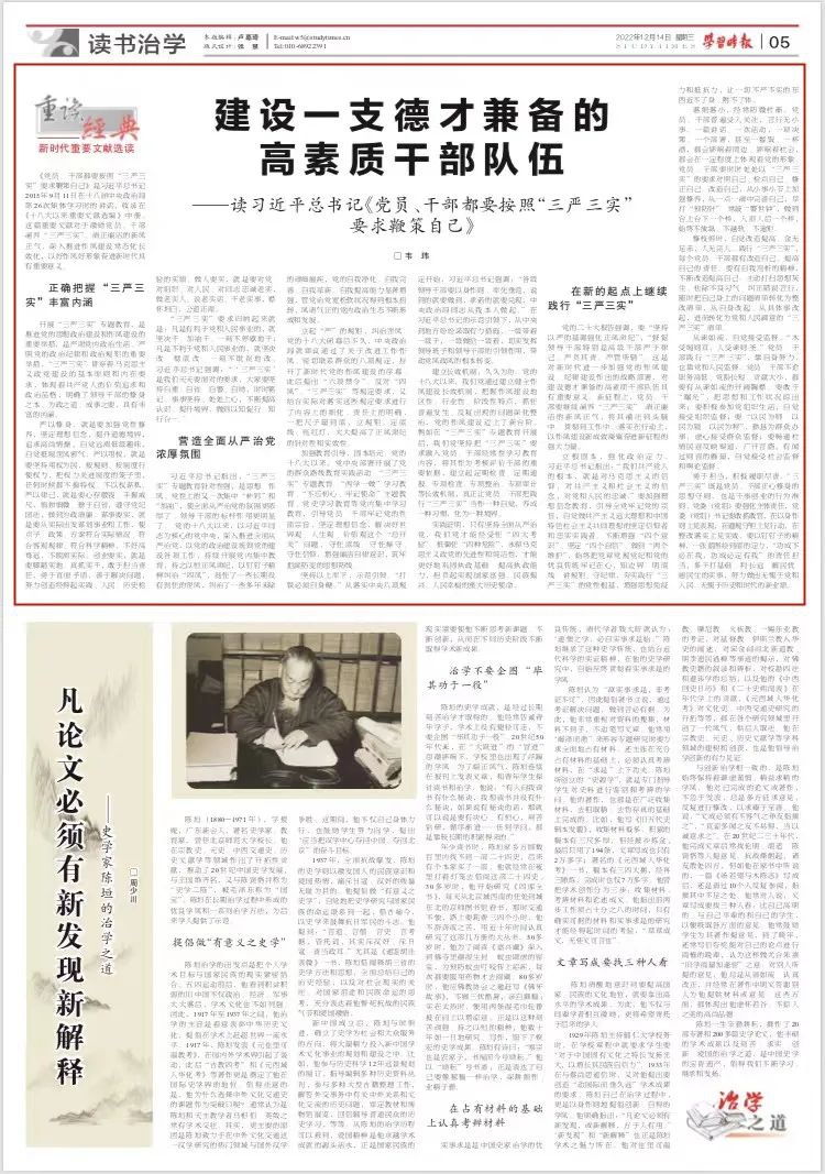 党的二十大报告强调,要“坚持以严的基调强化正风肃纪”,“督促领导干部特别是高级干部严于律己、严负其责、严管所辖”。这是对新时代进一步加强党的作风建设、纪律建设作出的战略部署,对建设德才兼备的高素质干部队伍具有重要意义。新征程上,党员、干部要继续涵养“三严三实”、清正廉洁的新风正气,将其灌注到头脑中、贯彻到工作中、落实在行动上,以作风建设新成效凝聚奋进新征程的强大力量。
