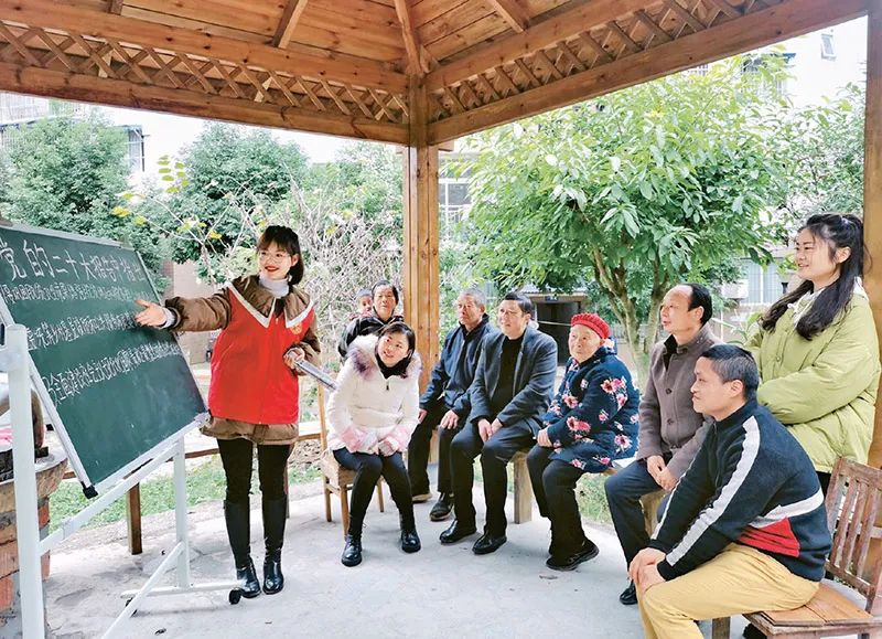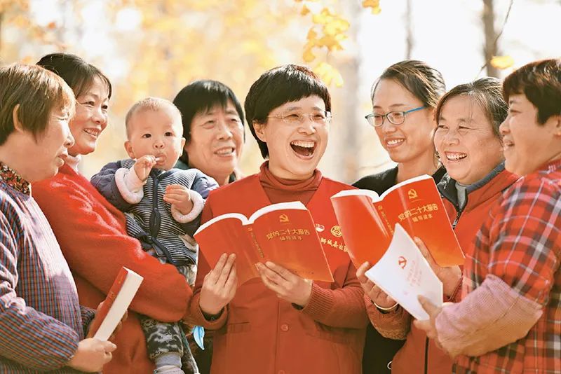 “这次全会选举我继续担任中央委员会总书记,我深感责任重大。同志们的信任,是我恪尽职守、继续前行的强大动力。我决心同新一届中央领导集体一道,紧紧依靠全党同志,紧紧依靠全国各族人民,为党和人民事业鞠躬尽瘁、竭诚奉献。”“党和人民把历史重担交给我们,是对我们的高度信任和殷切期望。我们要牢记党和人民的重托,不忘初心、牢记使命,为全面建设社会主义现代化国家、全面推进中华民族伟大复兴而团结奋斗。”2022年10月23日上午,北京人民大会堂。在热烈的掌声中,党的二十届一中全会选举产生了以习近平同志为核心的新一届中央领导集体,一批经验丰富、德才兼备、奋发有为的同志进入中央领导机构,充分显示出中国特色社会主义事业蓬勃兴旺、充满活力。习近平同志主持会议并在当选中共中央委员会总书记后作了重要讲话。在这篇重要讲话中,习近平总书记充分肯定党的十九大以来取得的重大成就和重要经验,充分肯定党的二十大的重大意义,充分肯定党的二十大通过的十九届中央委员会的报告、十九届中央纪律检查委员会工作报告和党章修正案,向新一届中央委员会成员提出明确要求。围绕“全面贯彻党的二十大精神,为实现党的二十大确定的目标任务而团结奋斗”的重大政治任务,习近平总书记对当前和今后一个时期要着重做好的工作,进行了深刻论述、提出了明确要求。一是深刻认识我国发展面临的形势,始终保持战略清醒;二是继续推进党的理论创新,不断提高马克思主义理论水平;三是深刻把握中国式现代化的中国特色和本质要求,牢牢掌握我国发展主动权;四是扎实贯彻全面建设社会主义现代化国家各项部署,着力实现高质量发展;五是全面落实以人民为中心的发展思想,扎实推进共同富裕;六是深入推进新时代党的建设新的伟大工程,着力推动全面从严治党取得新成效。图为2022年11月17日,山东省临沂市郯城县“巾帼宣讲团”成员为群众宣讲党的二十大精神。 人民图片 房德华/摄