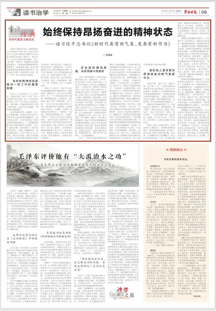 涓涓不塞,是为江河;源源不断,是为奋斗。在二十届中央政治局常委同中外记者见面时,习近平总书记强调:“新征程上,我们要始终保持昂扬奋进的精神状态。”新征程是充满光荣和梦想的远征。“蓝图已经绘就,号角已经吹响。我们要踔厉奋发、勇毅前行,努力创造更加灿烂的明天。”