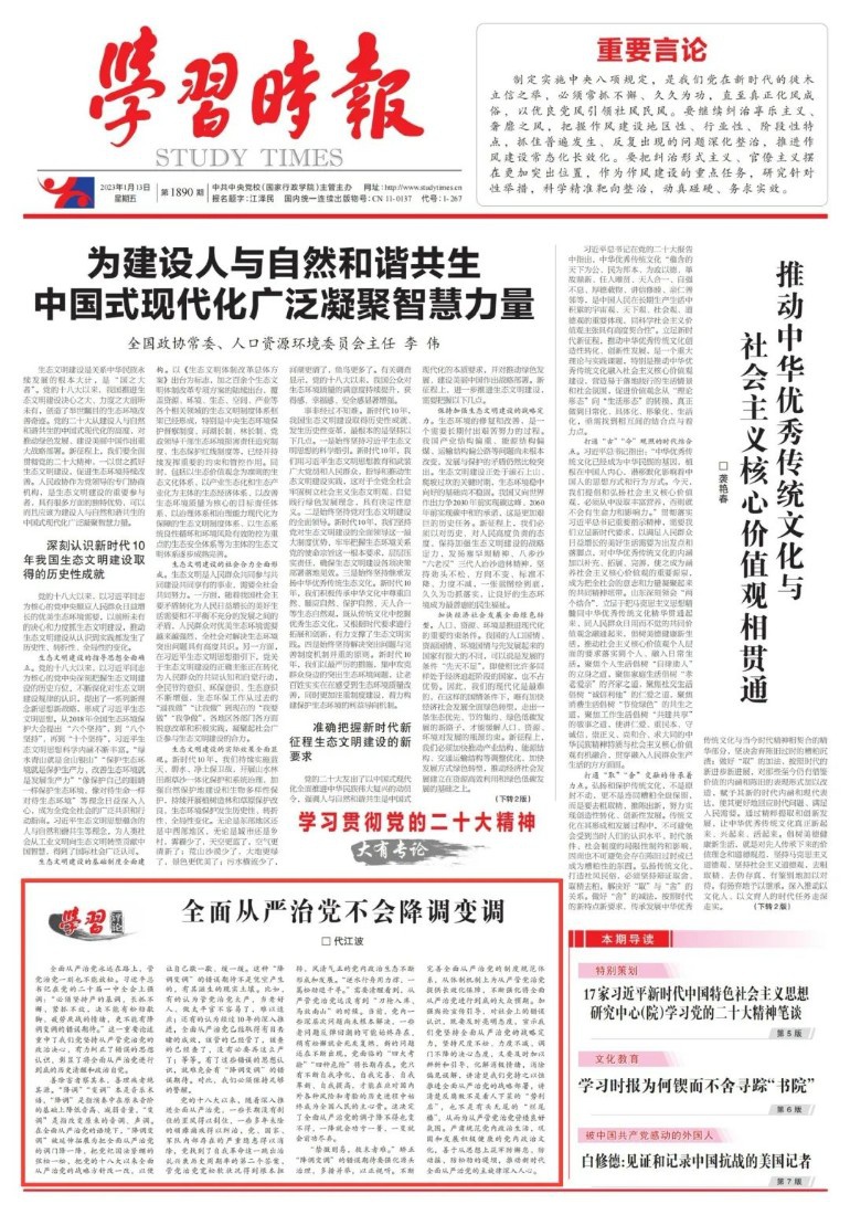 全面从严治党永远在路上,管党治党一刻也不能放松。习近平总书记在党的二十届一中全会上强调:“必须坚持严的基调,长抓不懈、紧抓不放,决不能有松劲歇脚、疲劳厌战的情绪,更不能有降调变调的错误期待。”这一重要论述重申了我们党坚持从严管党治党的政治决心,有力纠正了错误的思想认识,彰显了将全面从严治党进行到底的历史清醒和政治自觉。 善除害者察其本,善理疾者绝其源。“降调”“变调”本是音乐术语,“降调”是指演奏中在原来音阶的基础上降低音高、减弱音量,“变调”是指改变原来的音调、声调。在全面从严治党的语境下,“降调变调”被延伸拓展为把全面从严治党的调门降一降,把党纪国法紧绷的弦松一松,把党的十八大以来全面从严治党的战略方针改一改,以便让自己歇一歇、缓一缓。这种“降调变调”的错误期待不是凭空产生的,有其滋生的现实土壤。比如,有的认为管党治党太严,当老好人、做太平官不容易了,难以适应;还有的认为经过10年的深入推进,全面从严治党已经取得有目共睹的成效,该管的已经管了,该查的已经查了,没有必要再这么严了;等等。有了这些错误的思想认识,就难免会有“降调变调”的错误期待。对此,我们必须保持足够的警醒。 党的十八大以来,随着深入推进全面从严治党,一些长期没有刹住的歪风得以刹住,一些多年未除的顽瘴痼疾得以纠治,党、国家、军队内部存在的严重隐患得以消除,党找到了自我革命这一跳出治乱兴衰历史周期率的第二个答案,管党治党宽松软状况得到根本扭转,风清气正的党内政治生态不断形成和发展。“逆水行舟用力撑,一篙松劲退千寻。”需要清醒看到,从严管党治党远没有到“刀枪入库、马放南山”的时候。当前,党内一些深层次问题尚未根本解决,一些老问题反弹回潮的可能始终存在,稍有松懈就会死灰复燃,新的问题还在不断出现,党面临的“四大考验”“四种危险”将长期存在。党只有不断自我净化、自我完善、自我革新、自我提高,才能在应对国内外各种风险和考验的历史进程中始终成为全国人民的主心骨。这决定了全面从严治党的调子降不得也变不得,一降就会功亏一篑,一变就会前功尽弃。 “禁微则易,救末者难。”矫正“降调变调”的错误期待要强化源头治理,多措并举,以正视听。不断完善全面从严治党的制度规范体系,从体制机制上为从严管党治党提供长效化保障,不断强化将全面从严治党进行到底的大众预期。加强舆论宣传引导,对社会上的错误认识,既要及时亮明态度,宣示我们党坚持全面从严治党的战略定力,坚持尺度不松、力度不减、调门不降的决心态度,又要及时加以辨析和引导,化解消极情绪,消除偏见误解,讲清楚我们党持之以恒推进全面从严治党的战略部署,讲清楚反腐败不是看人下菜的“势利店”,也不是有头无尾的“烂尾楼”,从而为从严管党治党营造良好氛围。严肃规范党内政治生活,巩固和发展积极健康的党内政治文化,善于从思想上筑牢防懈怠、防动摇、防松劲的堤坝,推动新时代全面从严治党的主旋律深入人心。