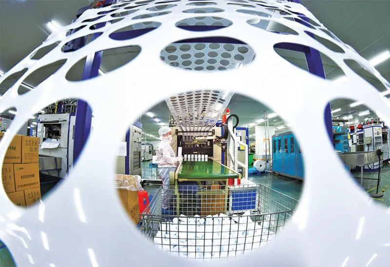 近年来,河北省抓住全球产业结构调整过程中孕育的新机遇,狠抓传统产业改造升级,推动战略性新兴产业融合集群发展,不断提高发展的质量效益。图为2022年10月12日,在河北省廊坊市文安经济开发区智能装备产业园河北鲲运塑料包装科技有限公司无尘车间内,企业员工在生产线上忙碌。 河北日报记者 赵永辉/摄