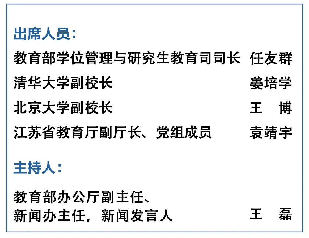 清华大学副校长姜培学介绍了研究生教育分类发展有关情况 清华大学是最早倡导和探索研究生教育分类发展的高校之一。经过近40年的实践探索,学校对研究生教育分类发展的认识不断深化,形成以下理念和做法。 一是提出分类发展理念,让学术更学术、让专业更专业。近年来,进一步形成了博士生教育以学术型人才培养为主体、体现大学人才培养的高度,硕士生教育以专业型人才培养为主体、体现大学服务国家经济社会发展的活力等新认识。 二是完善学科专业设置,形成两类学位教育并重格局。加快布局集成电路科学与工程、国家安全学、中共党史党建学等急需学科专业。目前,在学研究生中学术学位和专业学位分别占55%和45%,研究生教育分类发展的格局已经形成。 三是创新培养组织模式,快速精准响应国家重大需求。专业学位、学科交叉、国际化研究生培养采用“项目制”,按项目设定培养目标、分配招生计划、制定培养方案、开展教育教学等。清华大学2018年设立创新领军工程博士项目,服务于区域协同发展的粤港澳大湾区项目、西南地区项目和助力重点产业发展的重点领域项目等,汇聚校内25个工科培养院系,累计录取达1800余人。 四是健全分类培养机制,推动研究生教育高质量发展。探索建立适应不同类型研究生培养目标和生源特征的招生选拔机制,率先完成研究生学位评定标准破除“唯论文”倾向改革,针对学术学位和专业学位分别制定创新成果要求。 下一阶段,清华大学将进一步优化学科专业布局,建立健全指导教师分类管理机制,完善研究生分类选拔、分类培养、分类评价机制,同步提升两类学位研究生的培养质量。 北京大学副校长王博介绍基础学科人才培养有关情况 北京大学以基础学科人才培养为引领,不断推动学术创新型人才培养体系建设。 一是完善招生选拔机制,畅通人才自主培养路径。坚持“早发现、早培养”理念,着力选拔一批在基础学科方面有志趣、有天赋的优秀中学生进入相关专业领域学习。探索本博贯通培养,首批试点并全面推行博士生“申请-考核”制,优化人才选拔标准。 二是优化培养方案,加强过程管理。2023年全校共开设150余门论文写作与学术规范类课程,设置约7000个博士生助研岗位,引导在科研任务中提升原始创新能力。加强培养全过程管理,建立“博士生年度审核”“导师对博士生定期评价”等反馈机制,建立“博转硕”“结业”“退学”等多途径的分流培养制度体系。 三是延揽学术创新型人才培养引路人,优化导师队伍。出台人才强校战略二十条措施,完善师资人才队伍建设的顶层设计。近年来所引进人才覆盖基础学科、前沿学科、交叉学科等重点领域。实施新体制教学科研教师在引进时直接认定博导资格的举措,35岁及以下教师在新遴选博导中的比例明显上升。引导招生计划资源配置向国家战略急需领域、科研活跃且培养质量高的导师流动。 四是推动学科交叉,深化科教融汇。统筹学科学位点调整,有意识地开展交叉学科布局。已获批设置“国家安全学”和“集成电路科学与工程”一级学科,自主设置“数据科学与工程”“整合生命科学”等交叉学科。围绕前沿科学问题,加强与国家实验室、科研机构以及科技领军企业等近百家单位的联合培养。 未来,北京大学将继续遵循学位与研究生教育规律,进一步优化不同类型研究生的培养路径,不断提升拔尖创新人才自主培养质量。 江苏省教育厅副厅长、党组成员袁靖宇介绍了专业学位研究生培养有关情况