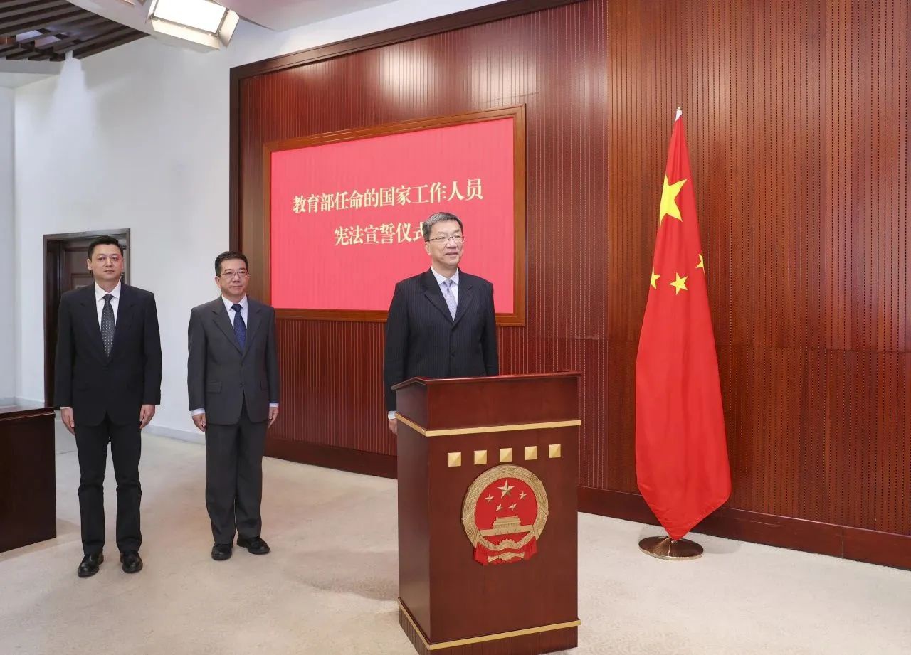 12月27日,教育部在京举行国家工作人员宪法宣誓仪式。教育部党组书记、部长怀进鹏监誓。 根据《中华人民共和国宪法》《国务院及其各部门任命的国家工作人员宪法宣誓组织办法》《教育部任命的国家工作人员宪法宣誓实施办法》等有关规定,89名教育部机关司处级干部和直属单位领导班子成员依法进行宪法宣誓。 宣誓现场,国徽高悬、国旗鲜艳,宣誓台上摆放着《中华人民共和国宪法》,气氛庄严而隆重。下午2时15分,宣誓仪式开始,全体起立,齐声高唱中华人民共和国国歌。随后,领誓人手抚宪法,右手举拳领诵誓词。其他宣誓人列队站立,右手举拳跟诵誓词。 教育部人事司主要负责同志主持宣誓仪式,相关司局负责同志列席宣誓仪式。