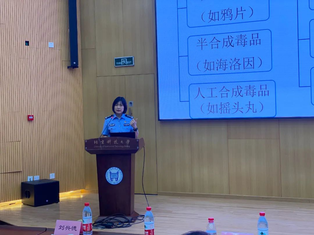禁毒总队宣教大队副大队长刘英茹,围绕毒品的危害、怎样预防毒品犯罪、如何识破毒品陷阱、如何防范新型毒品以及《北京市禁毒条例》等法律法规,向同学们宣传普及毒品相关知识,告诫同学们要遵守禁毒法律法规,进一步树立自我保护意识。