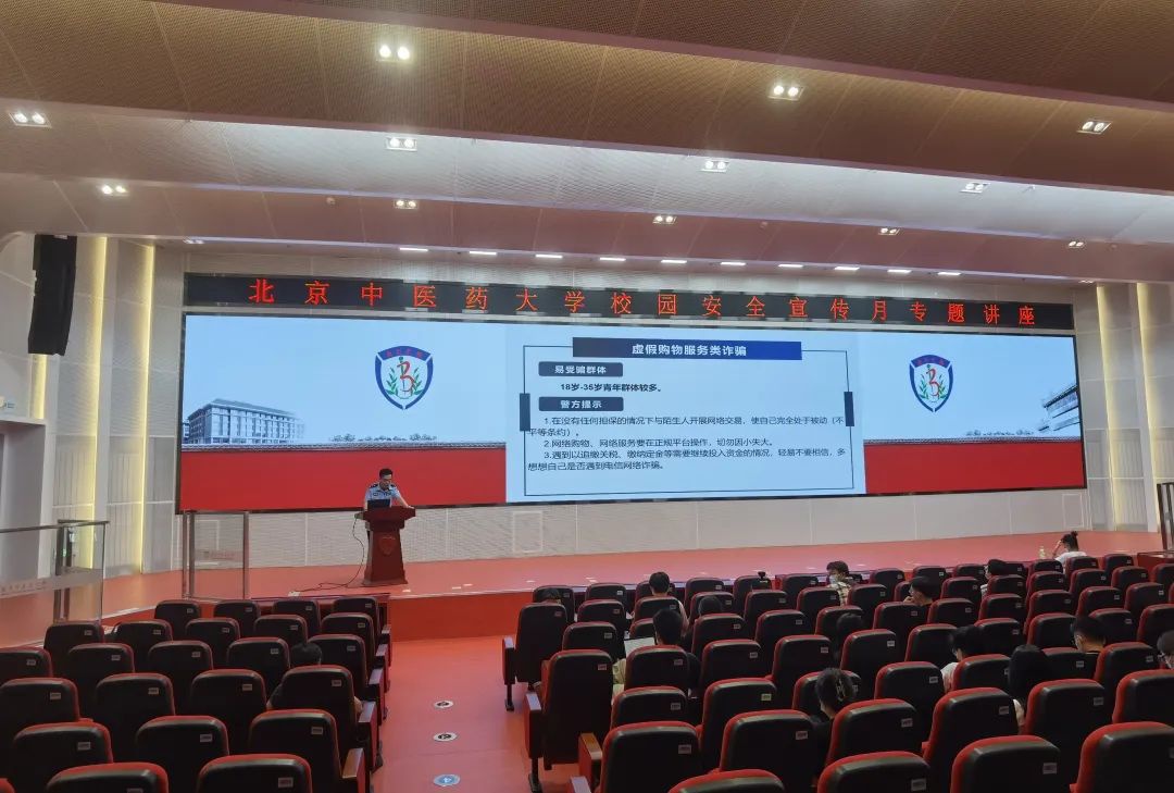 9月29日下午,北京中医药大学举办了校园安全宣传月专题讲座,邀请禁毒总队宣教大队及房山区刑侦支队反诈中心的警官做禁毒和反诈教育。本次讲座采用线上线下相结合的方式进行,学工部副部长艾华,各学院分管学生安全工作的辅导员及各学院学生代表现场参加了讲座,来自各学院各年级的200多名学生观看了现场直播。