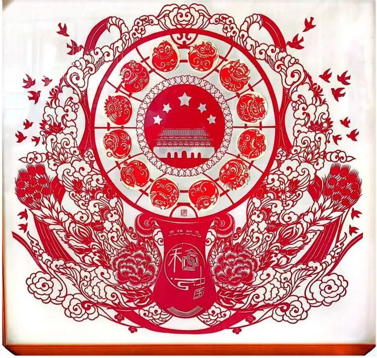 两幅作品分别融合了十二生肖、祥云、花卉、和平鸽、福字等各种吉祥元素,展现了韩月琴老师对祖国的深深祝福。和合中国,吉祥如意,山河壮丽,盛世华夏。