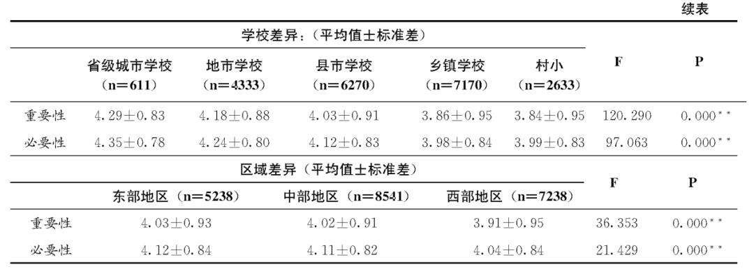 第二,教师对跨学科课程融合的认同度较高,其中东部省级城市高中教师对其重要性的认同度最高。