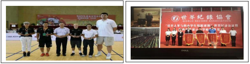 篮球运动在西安培华学院一直是徐教授主抓的特色项目,但同时它又是一项大众普及运动项目,那么在西安培华学院的篮球运动怎么抓?咋实施?特色在哪里成为了当时困扰所有人小难题。为此徐教授借助学校优质的运动环境,不断摸索大胆创新。发明了投篮辅助器规范学员技术动作动作,创造了 3V3 全场篮球抗赛。为了扩大篮球运动的大众化普及,弥补“小个子”对篮球运动的缺陷,徐教授又发明了扣篮辅助器,按照身高设置篮圈高度,让小个子也能体会到“扣篮”的快感。为增加篮球比赛的刺激性、观赏性,徐教授提出了“高分篮球新规则”,将篮球场地的得分区扩大,在 3 分区的基础上增加 4 分、6 分、10 分投篮区。正是由于这一创新和改革,才使得西安培华学院师生篮球爱好者创造了 3 项吉尼斯世界记录和 15 项世界纪录。