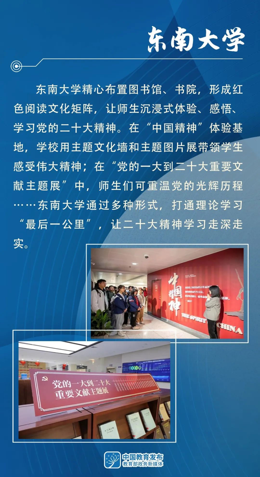 学习宣传贯彻党的二十大精神是当前和今后一个时期教育系统的首要政治任务。举办论坛、开设体验基地、微党课大赛……各高校通过多种多样形式广泛开展学习宣传活动。