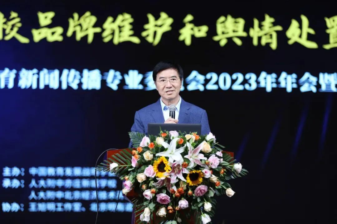 2023年6月3日,中国教育发展战略学会教育新闻传播专业委员会2023年年会暨学术论坛在人大附中亦庄新城学校举办。 中国高等教育学会会长,教育部原党组副书记、副部长杜玉波出席会议并宣布会议和学术论坛开幕。他希望大家在讲好中国教育故事、传播好中国教育经验、发出中国教育声音方面,做出更大贡献,努力增强我国教育的国际影响力和话语权。中国教育发展战略学会会长韩进出席会议并讲话。他指出,教育新闻传播工作要为各级各类教育的改革与发展保驾护航,要为教育教学的内涵与规律做正本清源的工作,要为教育治理体系与治理能力现代化的提升赋能助力。韩进强调,教育新闻传播工作是教育事业改革发展不可分割的重要部分,要努力探索规律,力求实效。中国教育发展战略学会常务副会长兼秘书长韩民出席会议并讲话。会议由教育部原新闻发言人王旭明主持。 ▲杜玉波宣布会议和学术论坛开幕 ▲韩进出席会议并讲话 ▲韩民出席会议并讲话 ▲王旭明主持会议 年会和学术论坛开幕前进行了第一届理事会第二次会议,通过届中变更选举出了新任理事长、副理事长和秘书长。华侨大学党委常委、副校长万安伦当选为理事长,张辉锋、郑伟、武斌儒、孙兴洋、许红平、王教凯、孙波、李小伟、孙纲当选为副理事长,陈鹏当选为秘书长,山东省中国传媒大学校友会副会长兼秘书长刘强当选专委会副秘书长。万安伦表示,理事长一职既是一份荣誉,也是一种责任,他愿与专委会全体同人携手共进,把专委会各项工作做得更好。据了解,专委会2023年工作将从加强自身建设,提升服务能力;举办论坛与培训,推动学术交流;提供品牌维护与舆情处置服务,为学校发展保驾护航;开展课题研究与成果推广,提升学术水平等四个方面开展。 ▲理事长万安伦讲话 在为期一天半的年会和学术论坛上,中国人民大学新闻学院党委书记兼副院长张辉锋以《中国式现代化与传媒发展走向》为题做了学术报告,围绕二十大报告中有关新闻传播业的规划,提出该行业当下具体形势与应对策略;中国传媒大学传播研究院教授刘笑盈以《全媒体时代校园的舆情应对与舆论引导》为题做了学术报告,从校园突发事件舆论引导的原则与方法、领导干部公共表达的心态与口径等方面给出了具体可行的实践建议;教育部原新闻发言人王旭明以《推进中国式现代化进程的重要法宝:公关与传播》为题做了学术报告,指出维护公共关系与提高传播能力是世界文明的共同特征,当然也是中国式现代化的重要方面。王旭明用大量实例强调以习总书记为核心的党中央对公关与传播的高度重视和率先垂范,同时也分析了当前存在的问题和不足,强调新时代教育新闻传播者必须承担公关与传播新使命,为新时代教育做贡献。 ▲张辉锋做学术报告 ▲刘笑盈做学术报告 ▲王旭明做学术报告 这次年会和学术论坛聚焦学校品牌维护和舆情处置,既重视专家理论引导,还特别关注基层一线经验分享。人大附中亦庄新城学校、人大附中北京经济技术开发区学校校长王教凯在主论坛上分享了两所学校的品牌建设经验。他介绍,这两所学校实行一体化管理,是集小学、初中、高中为一体的十二年一贯制品牌学校,现有学生数量近万人,占北京经济技术开发区学生总数一半以上,是开发区一张闪亮的名片。湖南省教育厅新闻中心执行主任伏汨芳,陕西教育学会副会长王永安、贵州经贸职业技术学院院长罗勇、杭州萧山技师学院院长许红平、柳州工学院党委书记罗云贵,河北工程技术学院党委书记常新平,成都市第十二幼儿园副园长孙倩和人民日报社《人民周刊》副总编张永恒等分别以“贯彻落实党的二十大精神,做好学校品牌维护与舆情处置工作”为主题,依次在主论坛分享了各自经验。另有26名来自本科院校、职业院校及其他社会各界的代表在平行论坛上介绍了相关工作案例。 ▲王教凯分享学校品牌建设经验 与会代表一致认为,此次年会和学术论坛主题策划非常契合当前形势下学校新闻宣传工作的真实需要,环节设计与内容安排能从理论与实践两个维度为实际工作给予指导与参考,会议干货满满,与会者收获颇丰。大家纷纷表示,会后将更加重视教育新闻传播工作,更加重视在教育新闻传播专业委员会的平台上与同人们沟通交流,为讲好中国教育故事、传播好中国教育声音贡献更多力量。 据了解,教育新闻传播专业委员会是教育部主管的国家一级学会——中国教育发展战略学会的分支机构,由教育部原新闻发言人王旭明于2018年发起创立,主要为各级各类学校提供新闻宣传、传播研究、品牌塑造、舆情处置、危机公关等服务,同时提供一个业界内外交流分享的平台。 ▲陶行知教育研究院院长赵德龙与王旭明会长合影
