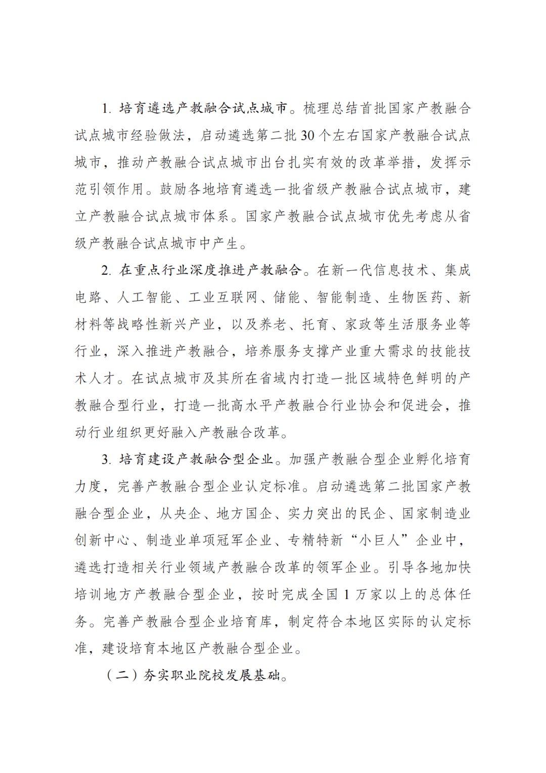 为推动职业教育产教融合高质量发展,近日,国家发改委、教育部、工信部、财政部、人社部、自然资源部、中国人民银行、国务院国资委等8部门联合印发《职业教育产教融合赋能提升行动实施方案(2023—2025年)》,明确2025年国家产教融合试点城市达到50个左右、在全国建设培育1万家以上产教融合型企业等一系列目标。