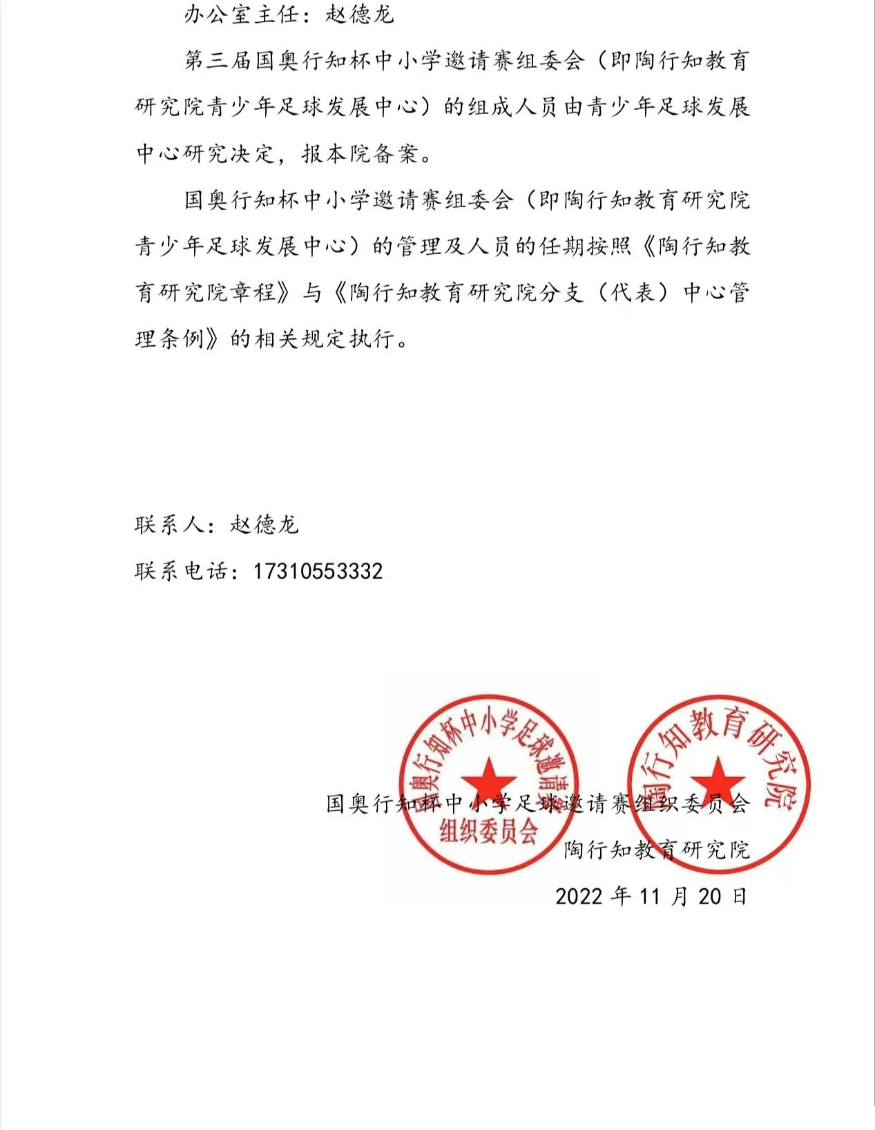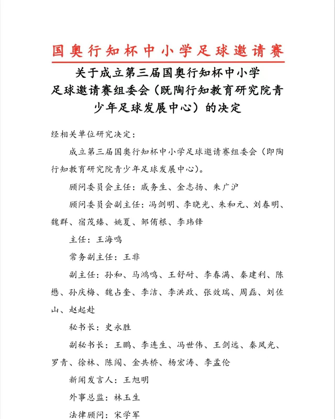 第三届国奥行知杯中小学足球邀请赛组委会成员名单